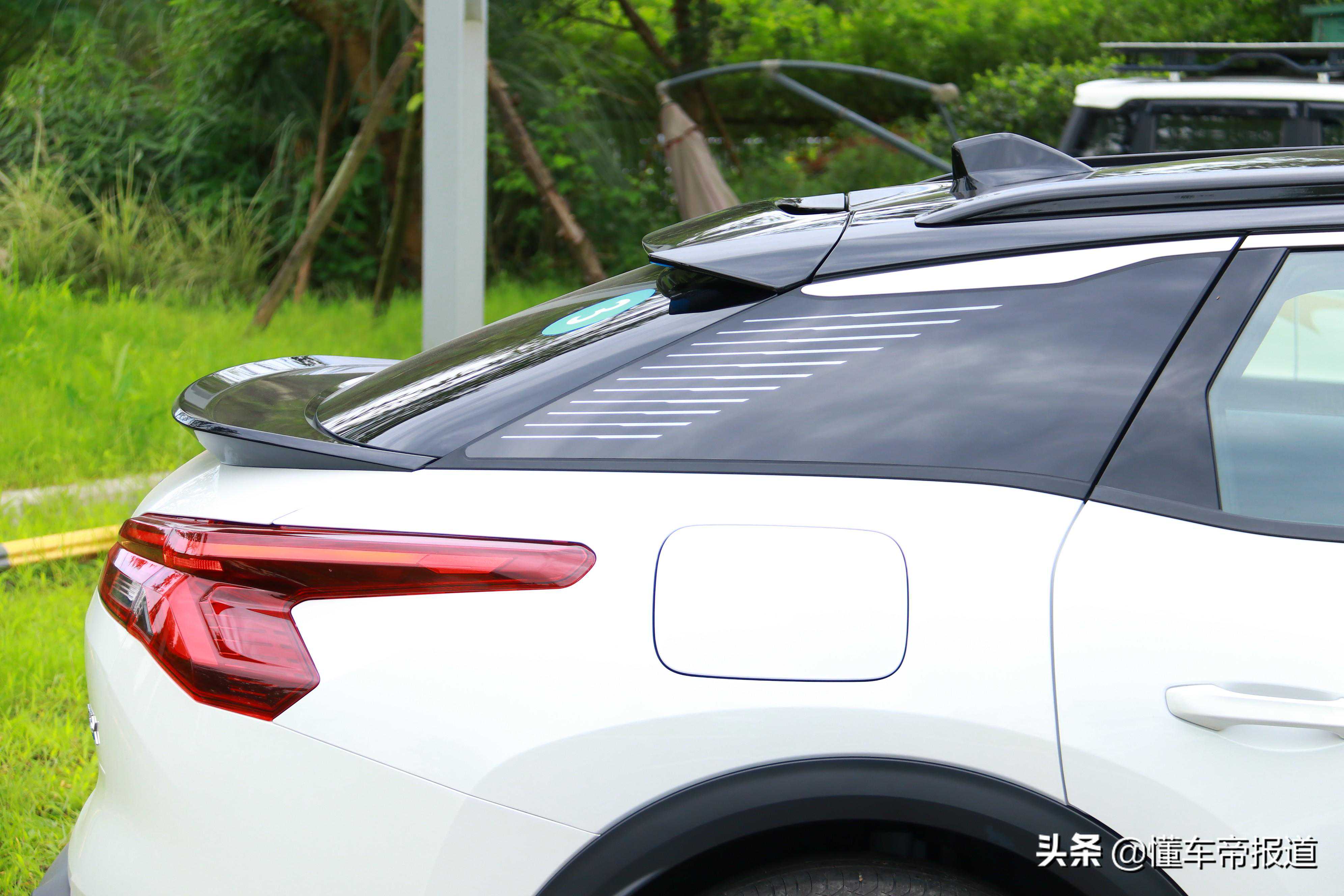 车尾设计十分饱满,最抢眼的无疑是双尾翼造型,除了在设计上让人眼前一亮之外,上方的镂空尾翼还可以起到疏导空气的作用。尾灯由59颗LED灯珠组成,能够保证整条示宽灯带的每一个位置都散发出均匀的灯光,点亮后也有着不错的视觉效果。