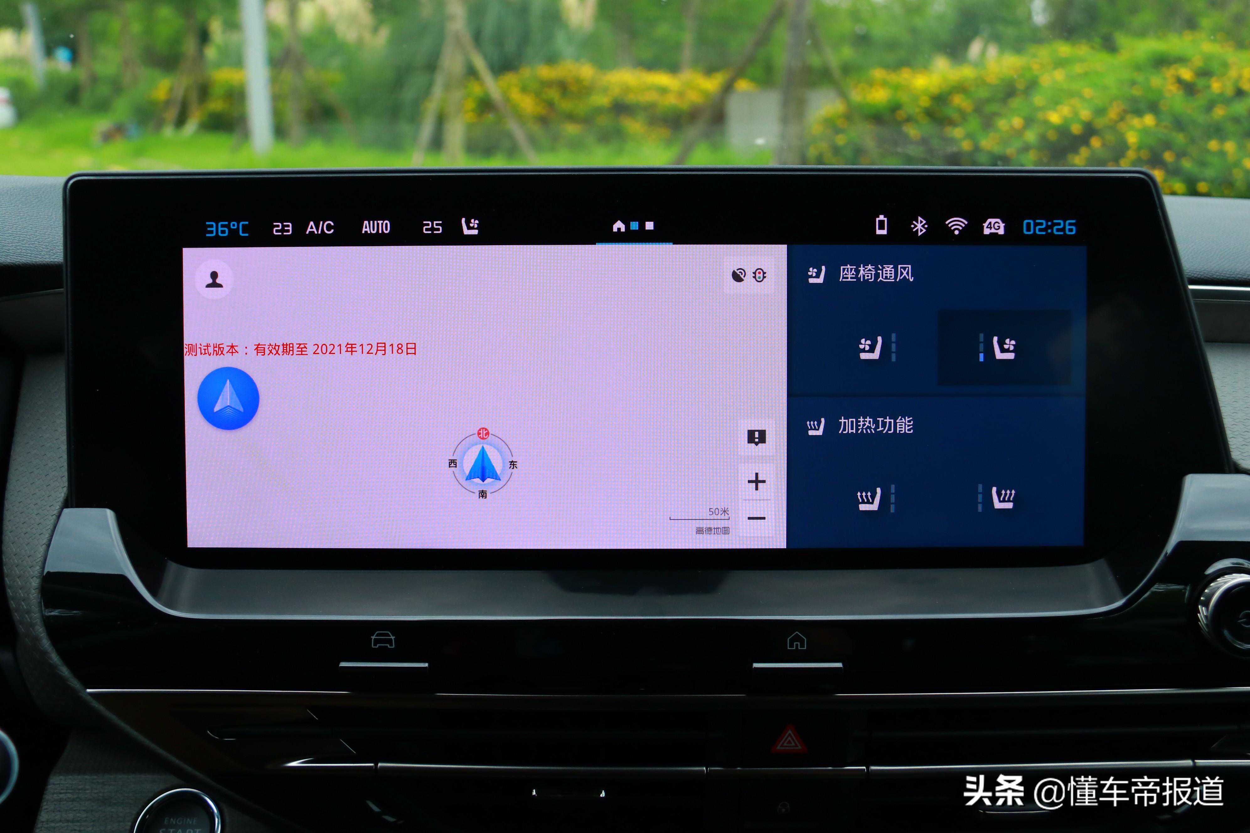试驾车型搭载了12英寸中控大屏以及7英寸液晶仪表,但由于内部系统还处于工程开发状态并非是最终版本,所以无法进行详细体验。仅从视觉感受来看,中控大屏的UI设计还是比较时尚的,至少比同级别的日系品牌要强上不少,操作起来也比较流畅,期待后续最终版本的使用体验。