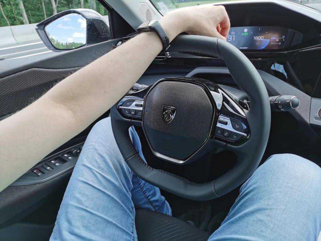 个人不喜欢标致i-Cockpit和因此带来的方向盘角度问题。不能理解为了仪表台造型和一个HUD类似物却要做一个狭长的仪表外加一个尺寸奇怪、上下平底方向盘的逻辑何在,这个设计还限制了可行的驾驶姿势以及上下车便利性。以我为例,只有在方向盘放在最下方、拉到最靠近身体的位置时才能看到仪表盘的全部信息,而此时我只能捧着落在裤裆里的方向盘,或者干脆把手架在方向盘的上沿上。