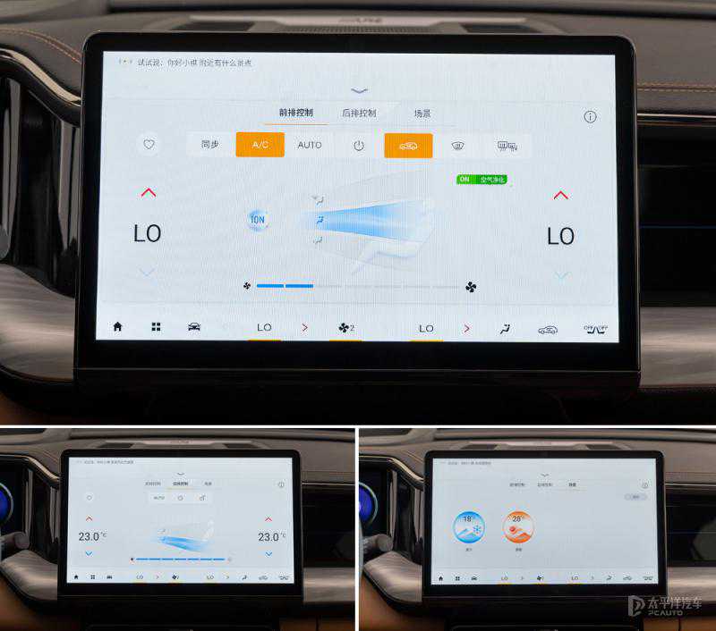 2024款传祺GS8配备了三区自动空调系统,还有空气净化系统;在中控屏上可以控制前/后排的空调,十分便捷,当然还可以通过“你好,小祺”来控制。值得一提的是,2024款传祺GS8还提供了速冷和速热模式,在大夏天或者大冬天的时候特别实用。