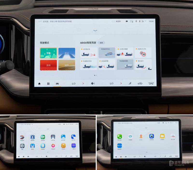 全系标配14.6英寸中控触摸屏,搭载ADiGO车载系统,芯片升级为高通骁龙8155,显示依旧清晰、细腻,操作更加流畅,响应更加快速,官方称:8155芯片能够让ADiGO车载系统实现2s系统开机响应、2s在线应用开启响应、1s在线应用界面切换响应。
