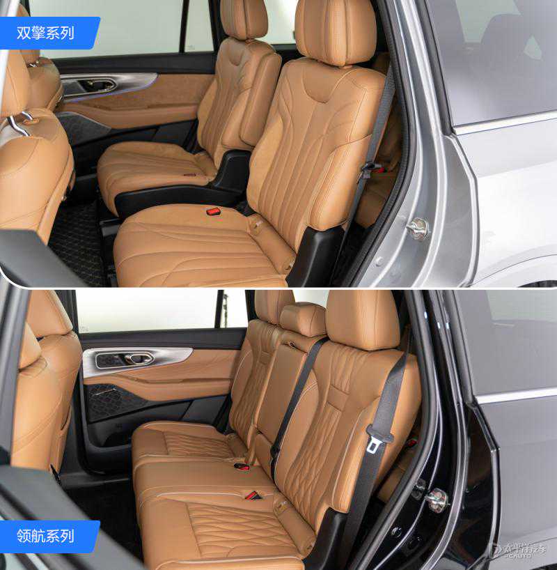 座椅配置方面,双擎系列与领航系列也有一定的差异,比例电动腿托功能,只有双擎系列才配备。