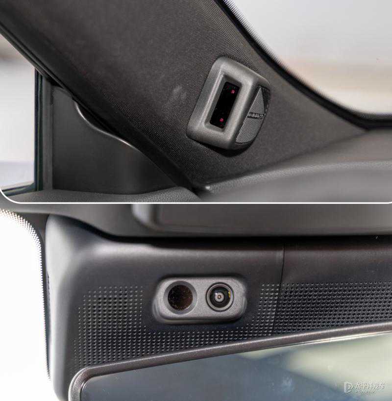 2024款传祺GS8在A柱布局了驾驶员监测系统的探头,在中央后视镜位置布局了摄像头,用于支持后排影响等功能。