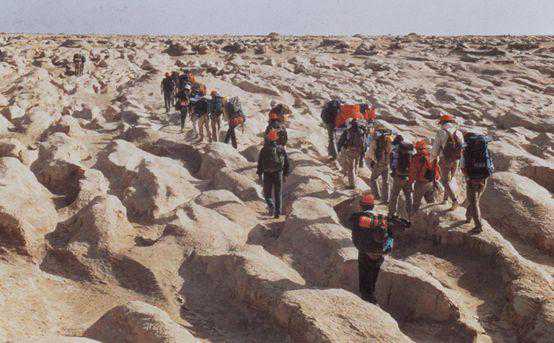虽然考古装备随着年代不断演进,但楼兰上百处的文物点,主要还是靠考古学者的双腿行走调查。这里属于无人区,风沙大、没有水、没有电,环境非常恶劣,考古队的行李都随身携带,大家走到哪露宿在哪。