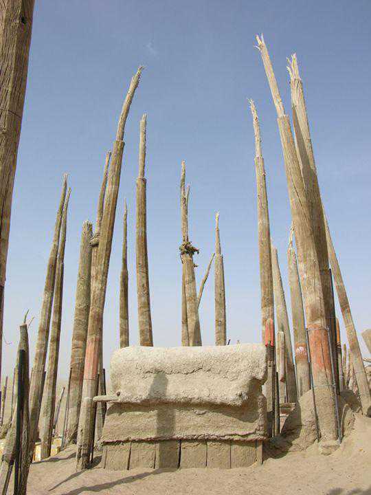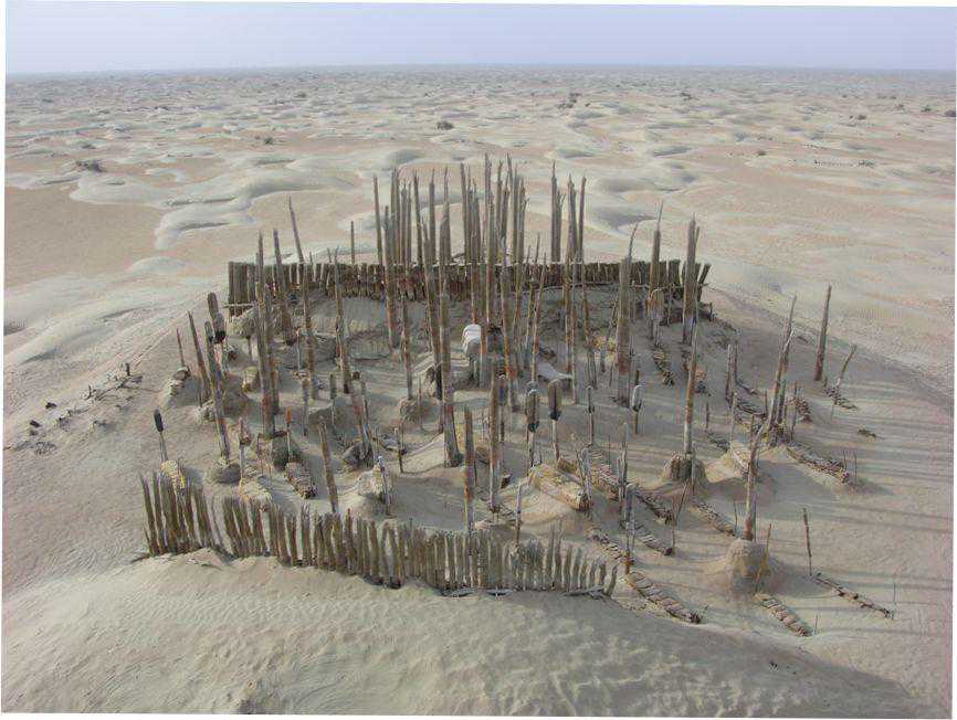 在克里雅河北方墓地中也发现胡杨木棺,男根、女阴立木及木栅墙。可惜的是,等我们2012年再次前往时,这座墓地已经被整体盗挖。