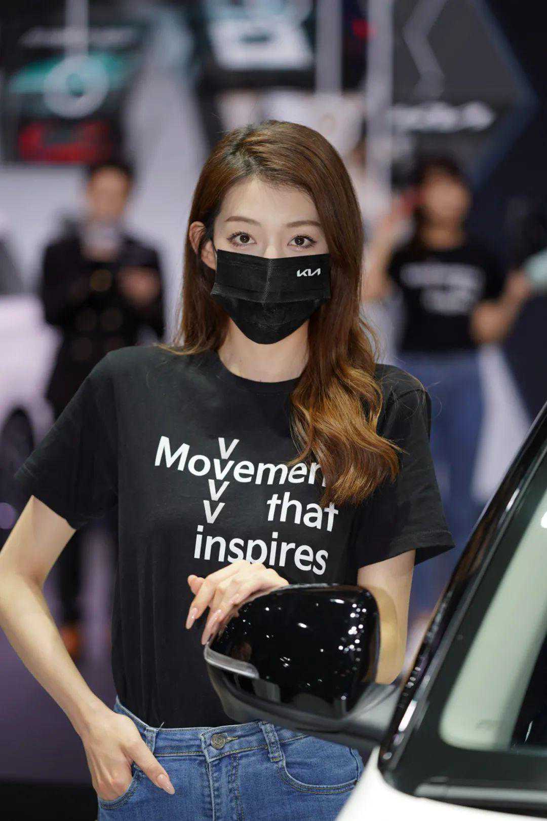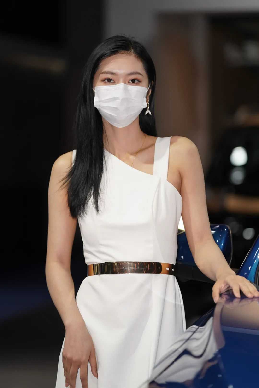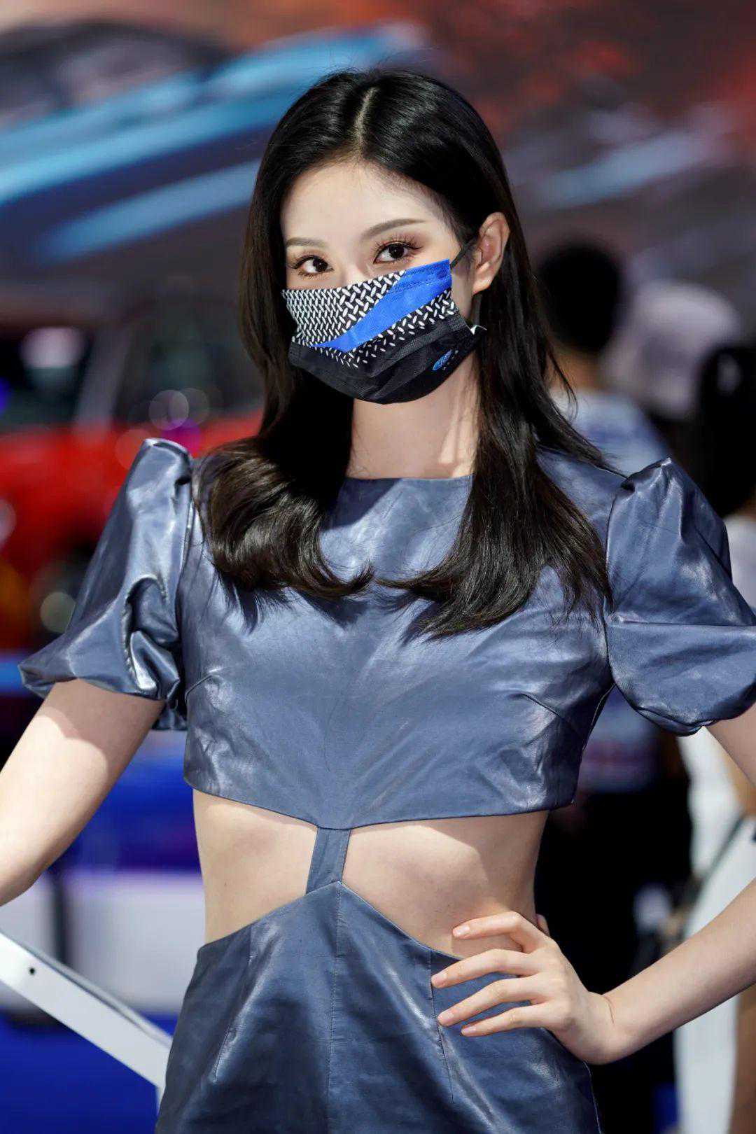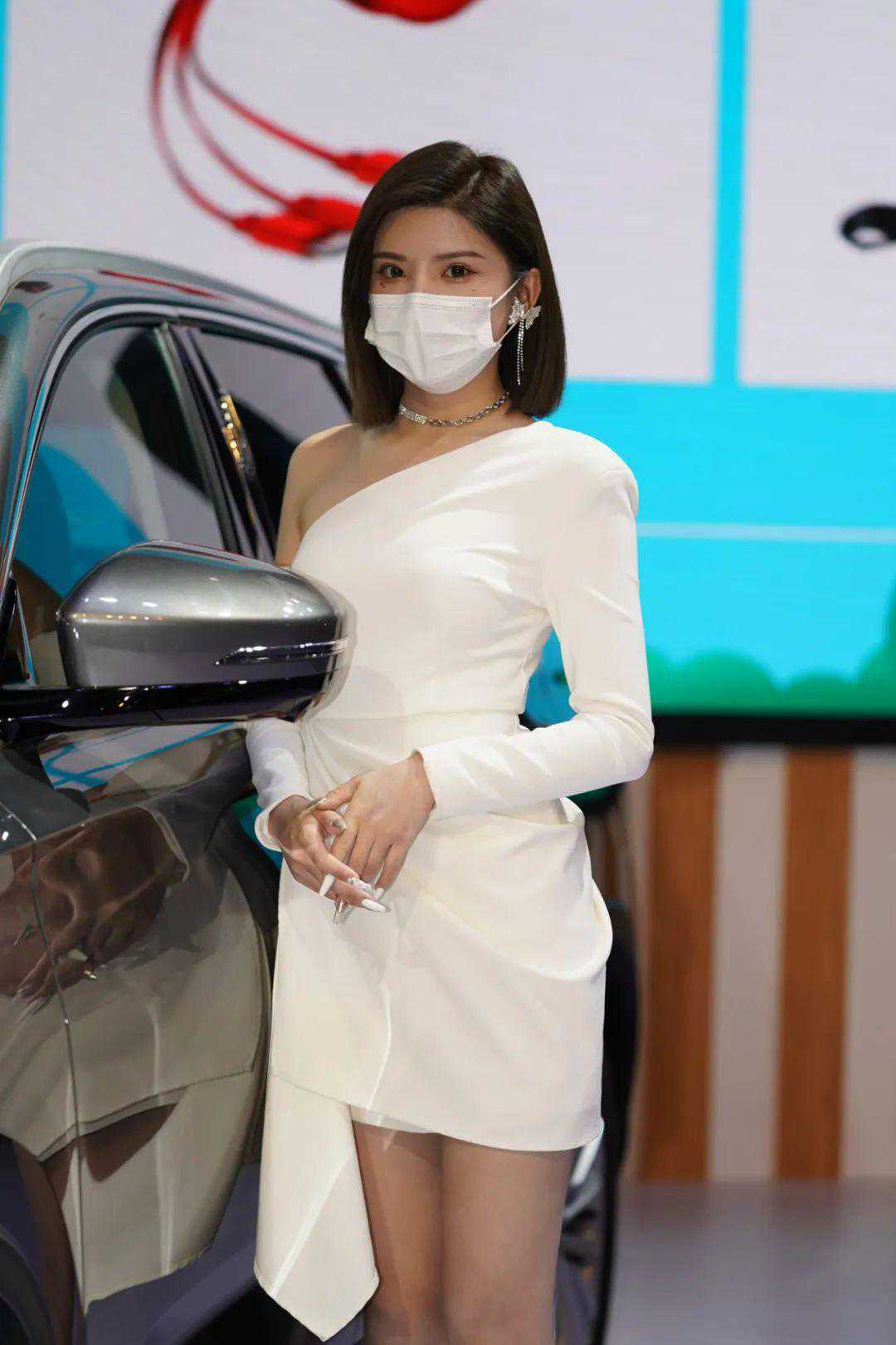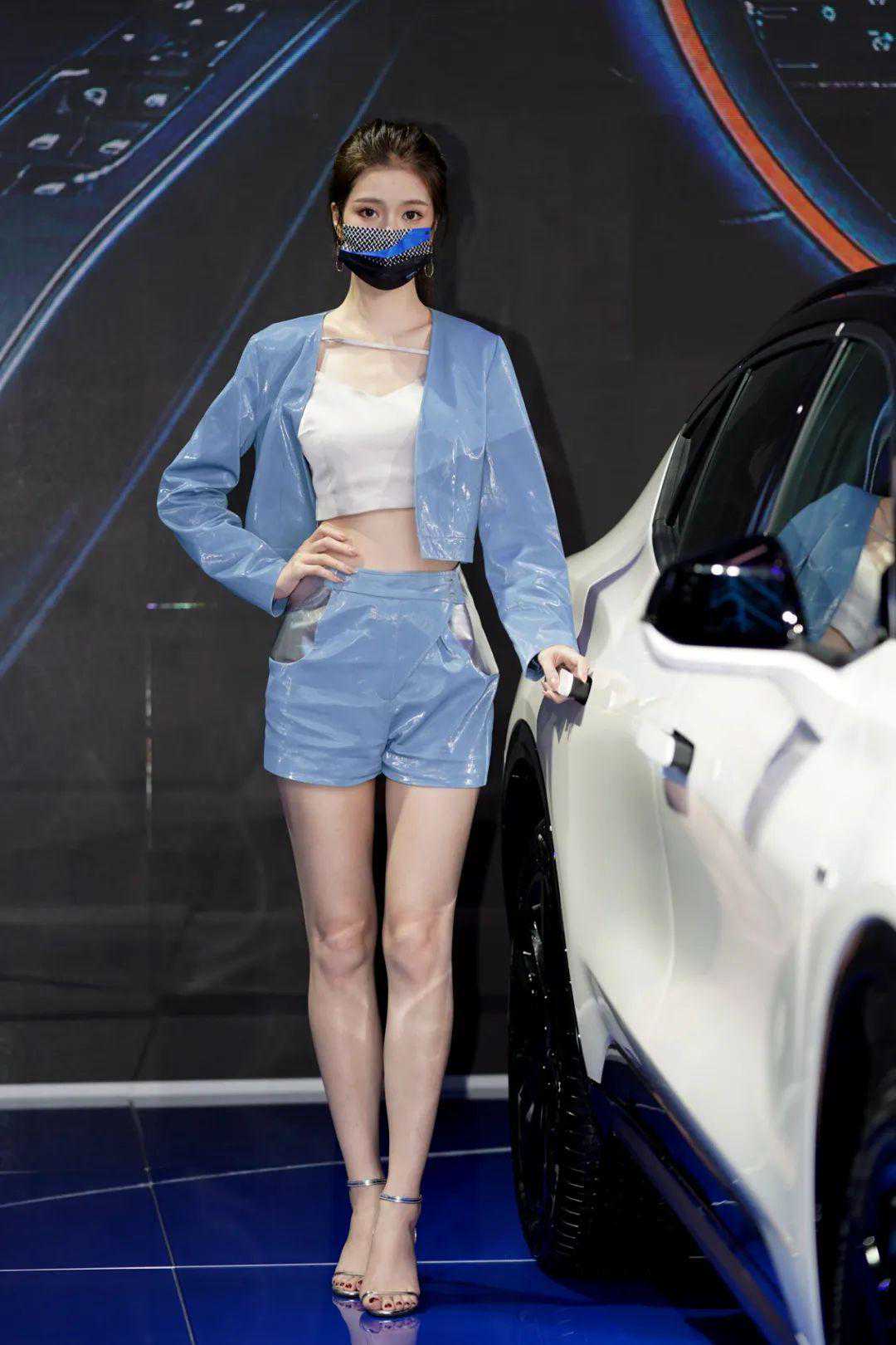 长安福特展台模特各个身材棒棒的,口罩也相当漂亮。