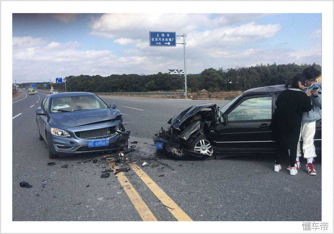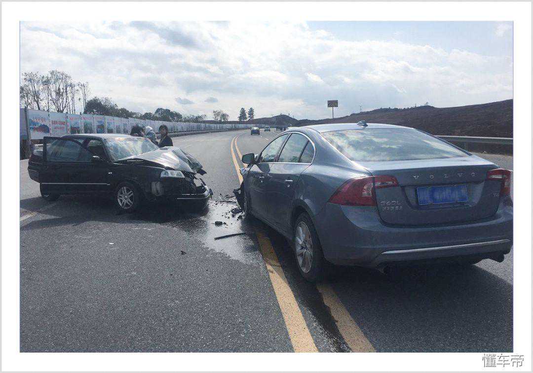 2月份,他岳父开着刚买没两个月的沃尔沃S60L外出,然后在行驶中迎面与一辆大众桑塔纳志俊发生了小偏置率碰撞,从现场图片可以看到,车型较老的桑塔纳志俊受损较为严重,而沃尔沃S60L则只是左车头有损毁,A柱没有形变,车体其他部分也没有明显损伤。