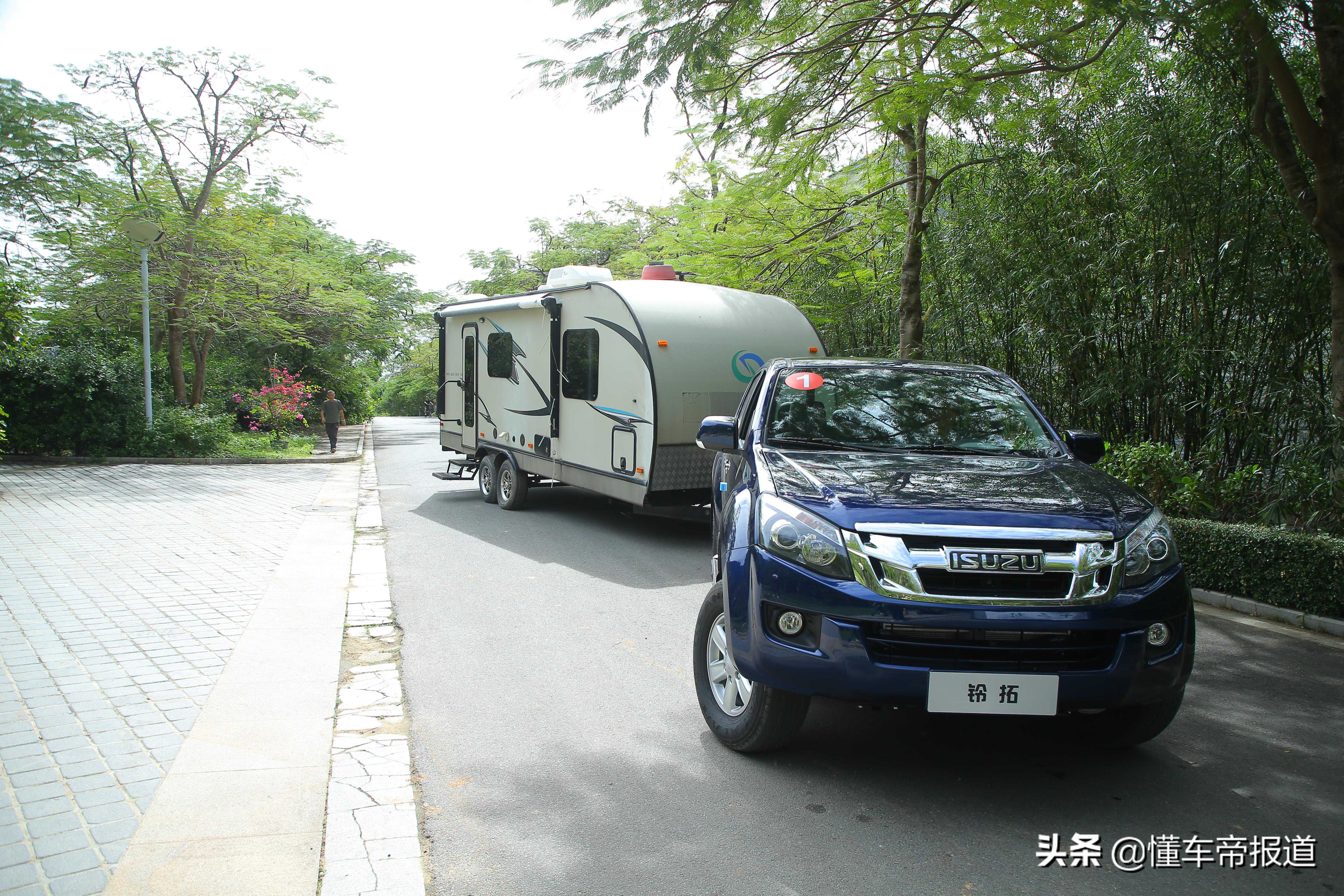 除了常规的城市高速路况试驾之外,作为一台皮卡车当然要玩出一些不一样。拖拽水上摩托艇这种小事对于铃拓来说自然不在话下,但大尺寸房车对拖拽力还是有一定的要求的。活动现场,工作人员也为我们示范了拖拽房车的技术和动作要领,相比于普通驾驶来说,盲区更多视野也会受到很大的限制,当然倒车时也要牢记“反方向”定律。