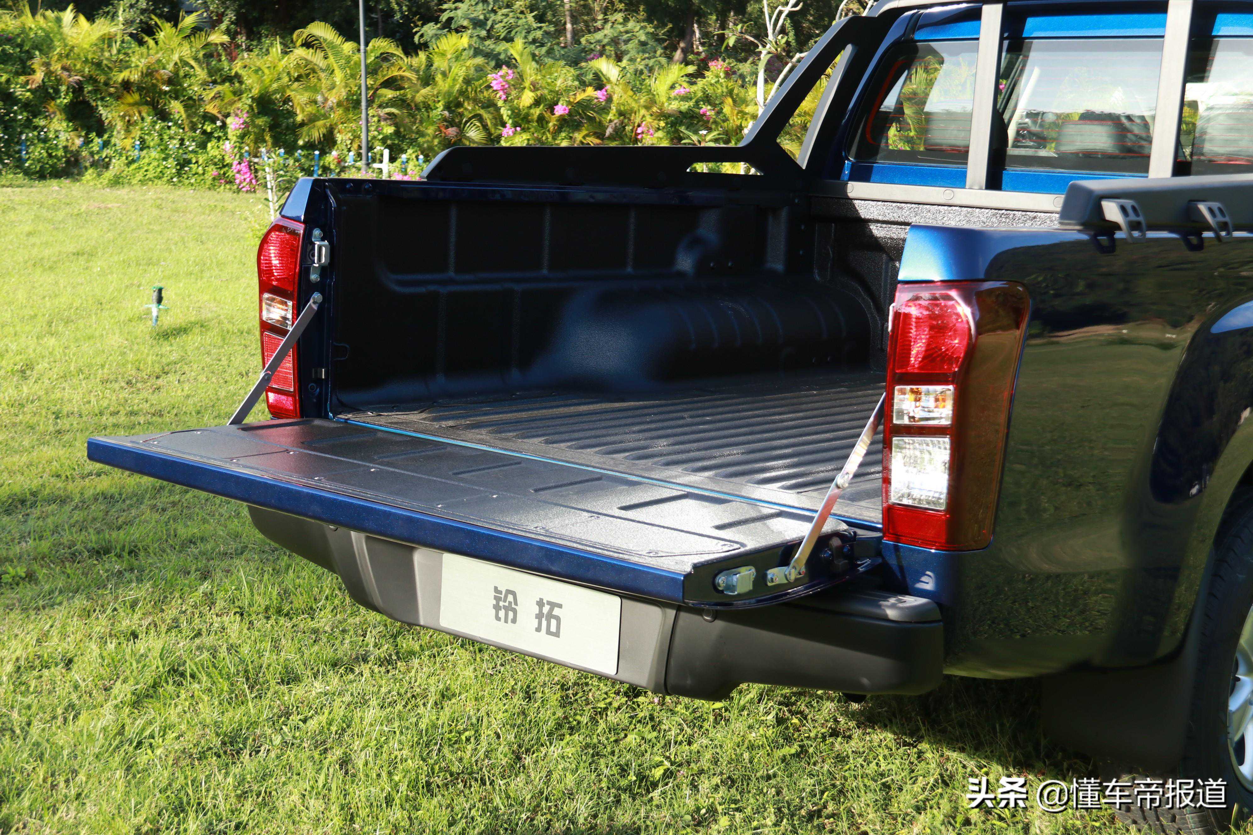 车尾设计和现款并没有不同,镀铬尾门把手旁边是倒车影像摄像头,对皮卡来说也是一个非常实用的配置。打开尾门之后,宽大的货厢基本满足所有日常需求,长轴距版本还涂装了货厢宝,标准版则是光滑的平面。