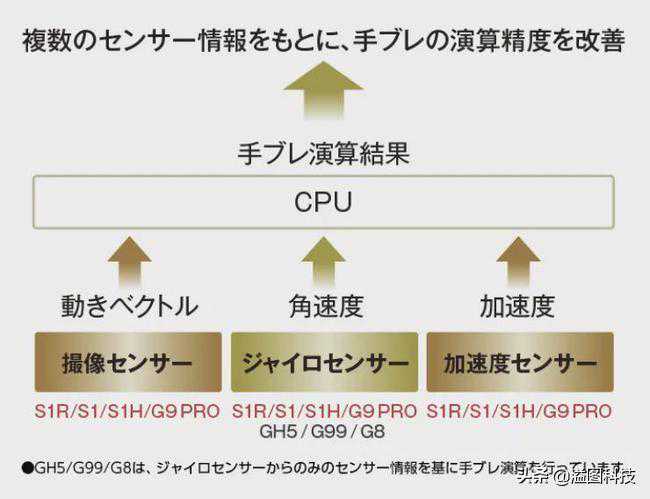 ▲G9/S1/S1R/S1H会综合传感器捕捉画面、陀螺仪、加速度传感器的信息进行防抖计算。