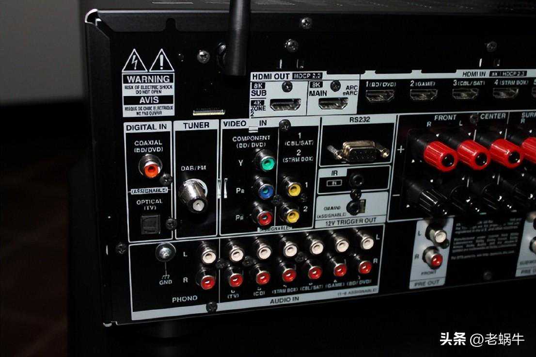 输入接口:HDMI×7、类比色差×1、复合图像×2、数位同轴×1、Toslink光纤×1、二声道类比音讯×6、3.5mmminiStereo×1、Phono(MM)×1、USB×1、网络接口×1、FM/AM天线接口各1组