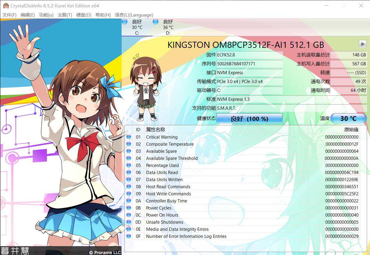 通过CrystalDisklnfo查询,冲锋坦克2GL65配备的是一块来自金士顿的1TB固态硬盘,CrystalDiskMark测试成绩为1987MB/s的SEQ1M(Q8T1)读取和981MB/S的SEQ1M(Q8T1)写入,表现符合预期。