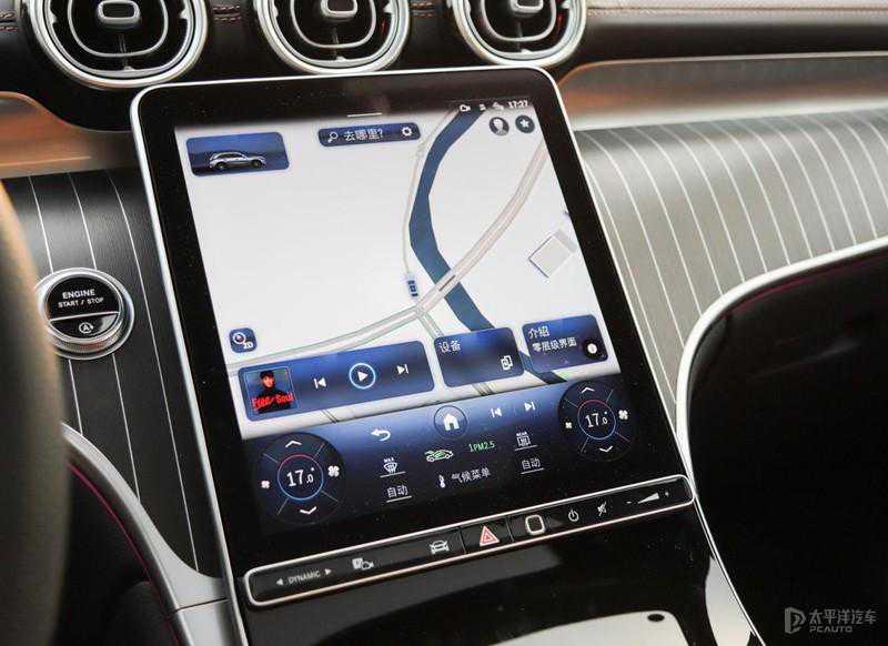 中控采用11.9英寸的OLED屏幕,并且向驾驶位倾斜了6°,它搭载了奔驰第二代MBUX操作系统,采用零层级界面UI。整套系统不论是图标的精美度,还是操作流畅度都是非常棒。不过它的功能性相比如今的国产新势力品牌,还是要稍逊一筹的,当然你也可以通过手机无线CarPlay这种互联方式来拓展它的功能性。