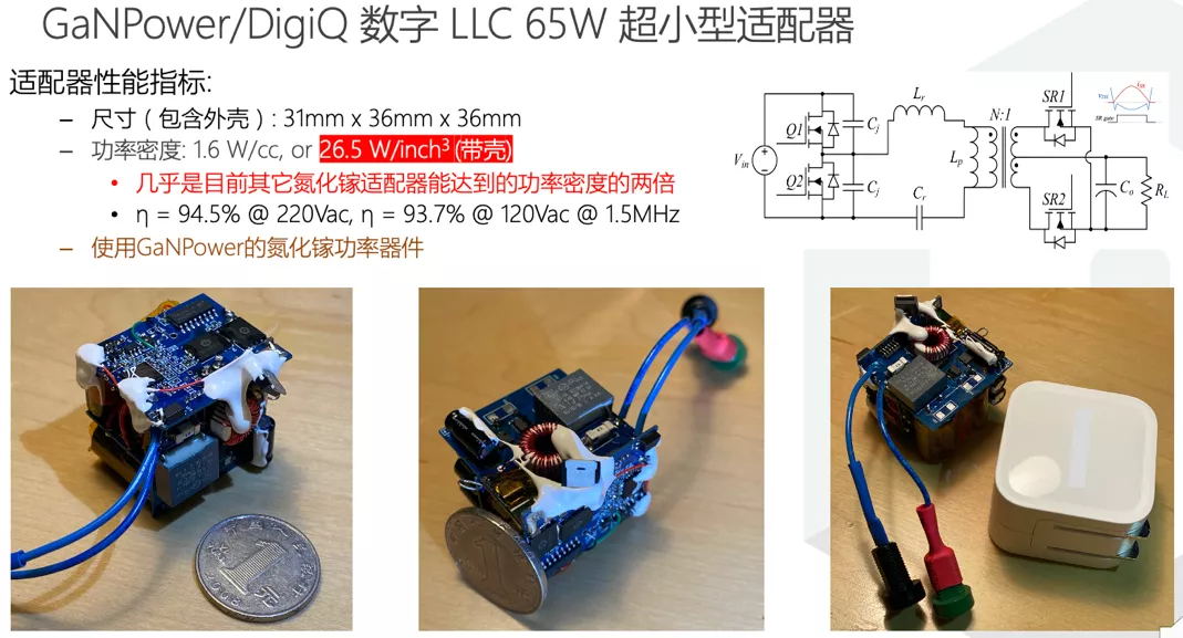 据悉,量芯微半导体已经推出650V氮化镓功率器件,适用于45W-300W快充。同时也可提供多种解决方案,包括65W单C口,1C+1A口;120W2C+1A口;150W到220W适配器等。拓扑结构,包括传统的QR准谐振,和公司自主创新的65W/120W数字LLC技术,能最大化功率密度并提升效率。