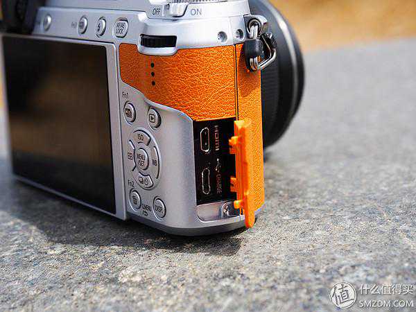 另一侧机身,是充电接口的盖子,打开里面是HDMI和MicroUSB接口,MicroUSB可以提供机身的数据传输还有充电。不过,喵的,快门线接口哪去了!!!好像没有。