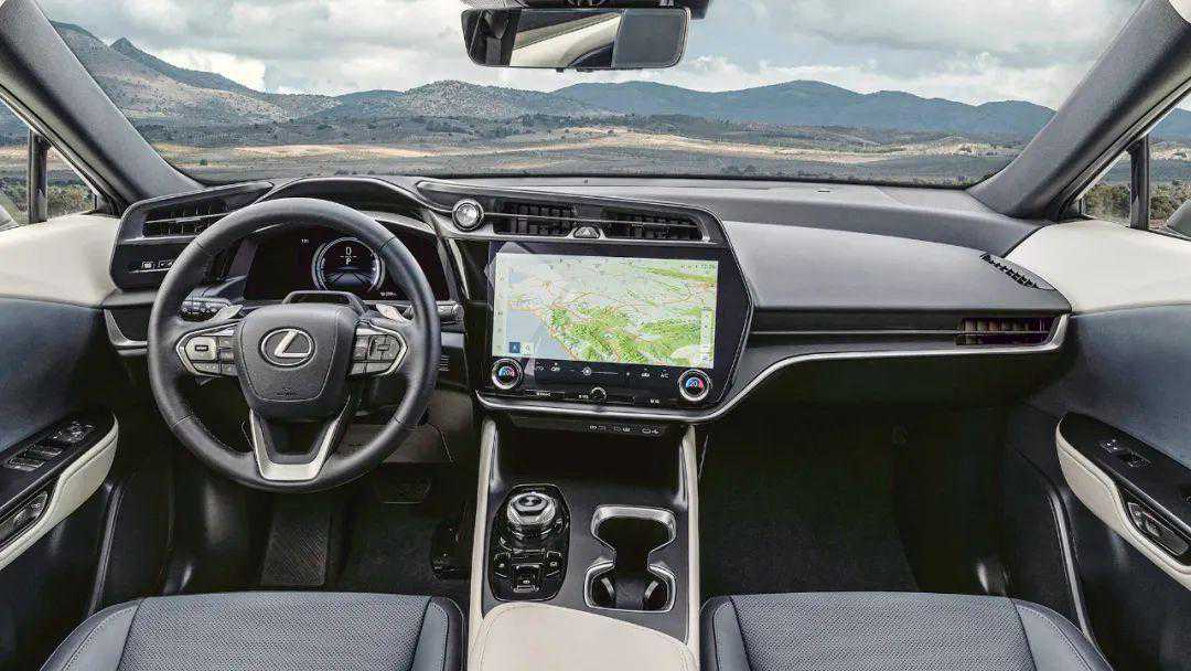 内饰部分,雷克萨斯RZ采用了类似飞船座舱的不对称设计,并且也提供了类似bZ4X的异形方向盘,整体更有未来感。不过这项配置并不会成为标配,车辆默认还是会使用传统的圆环方向盘,看起来就没那么科幻了。