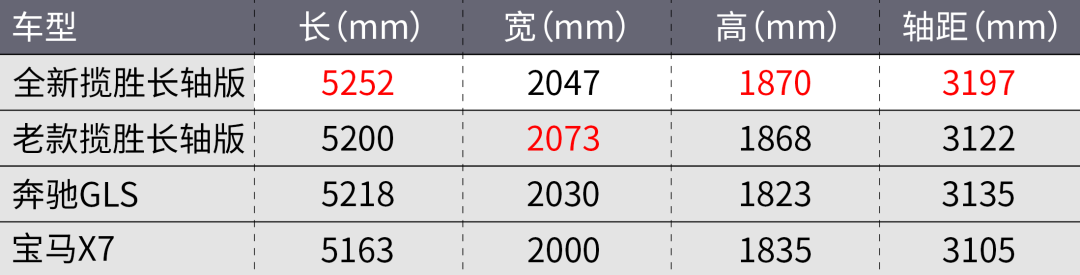 此次国内上市的车型全部为长轴版本,相比老款车型在车身长度上提升了52mm,轴距提升了75mm。而对比竞争对手奔驰GLS和宝马X7,全新揽胜在尺寸上也有一定优势。