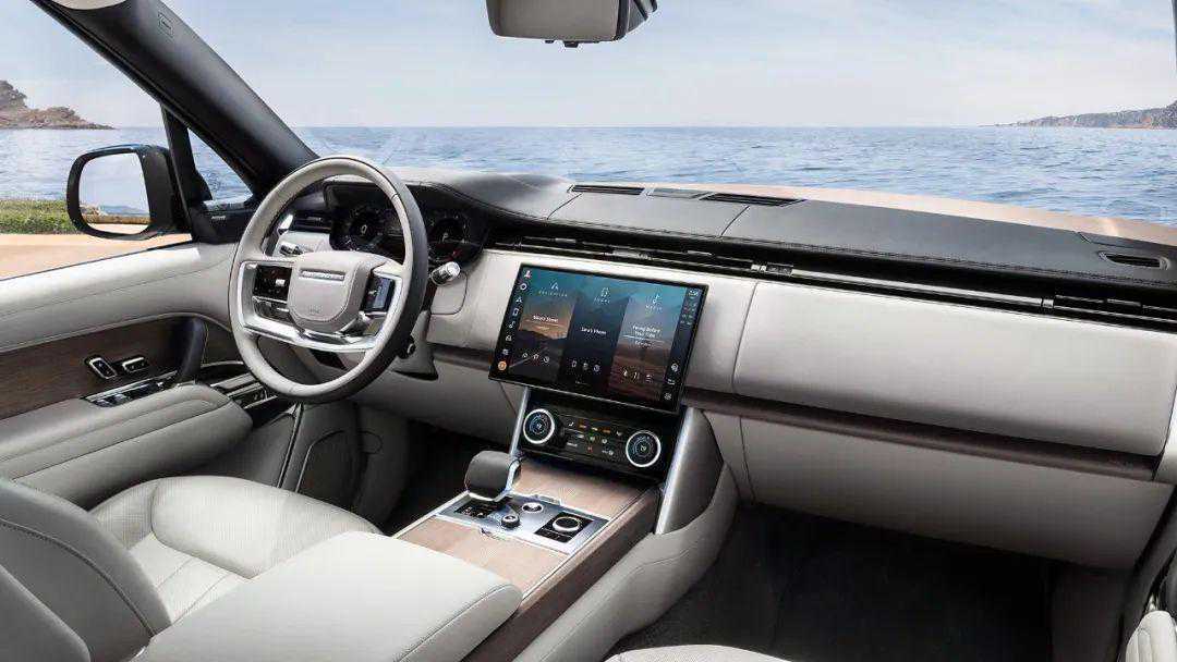 全新揽胜的内饰采用了时尚与豪华兼顾的设计,有着浓厚的北欧简约气质。其中,两幅式双色方向盘看起来非常典雅,副驾驶仪表上大面积的留白处理也显得十分克制。此外,车辆还采用了13.7英寸全液晶仪表,以及13.1英寸超窄边框中控屏的搭配,并提供了非常丰富的信息和娱乐功能。
