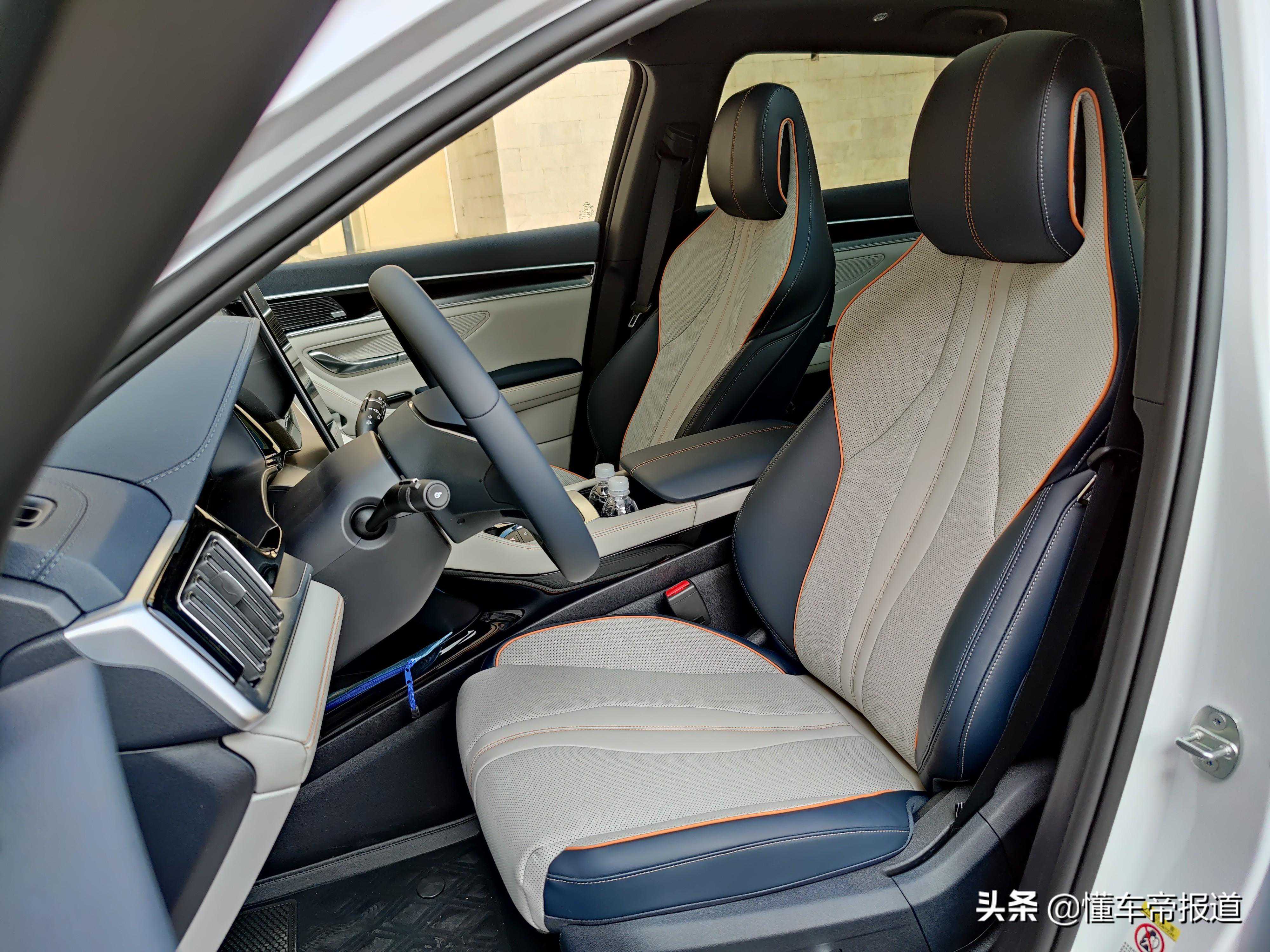 前排座椅采用了一体式设计,填充物柔软,坐起来很舒适。全系标配主副驾的电动调节功能(尊贵版主驾6向调节/旗舰版主驾8向调节),旗舰版还配备了座椅加热通风功能。
