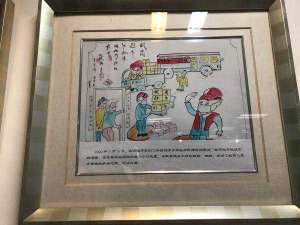 在武商超市总部大楼办公区域的走廊里,悬挂着一幅格外显眼的漫画《武商超市忙配送》。漫画作者是百步亭社区的一位普通居民,他专门用这样的方式回赠超市人。比起保供期间获得的无数荣誉和锦旗,这份馈赠最为珍贵。
